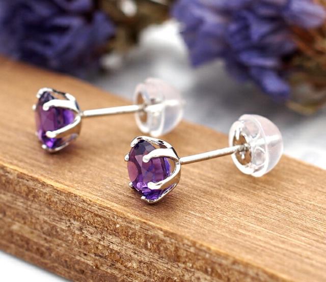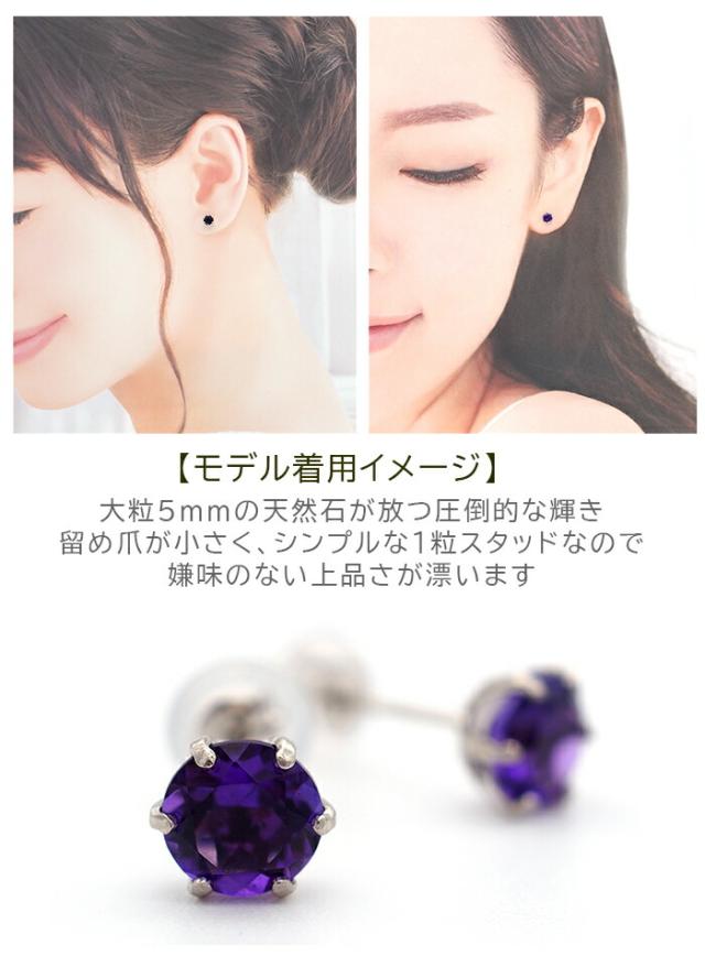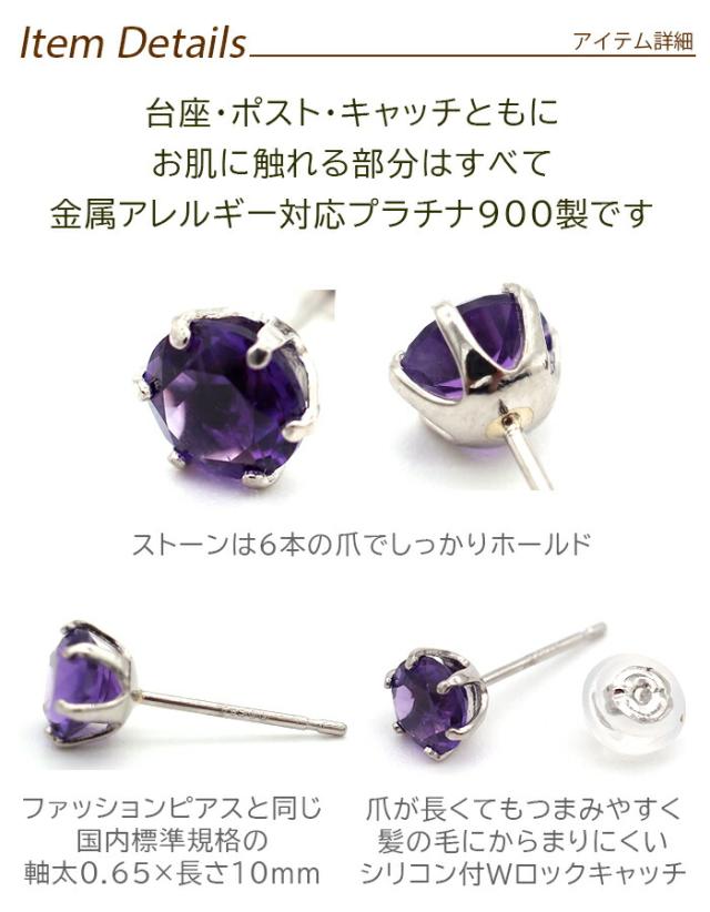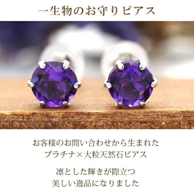 つけっぱなし ピアス プラチナ アメジスト 大粒 5mm 天然石 誕生石 品質保証書つき 金属アレルギー対応 片耳 1個 日本製