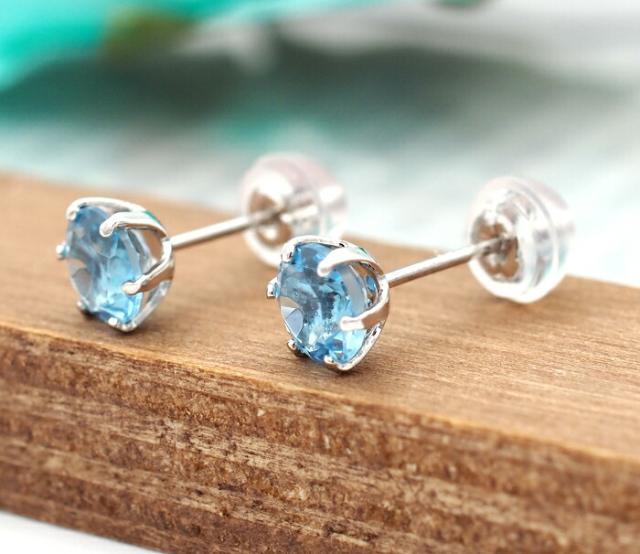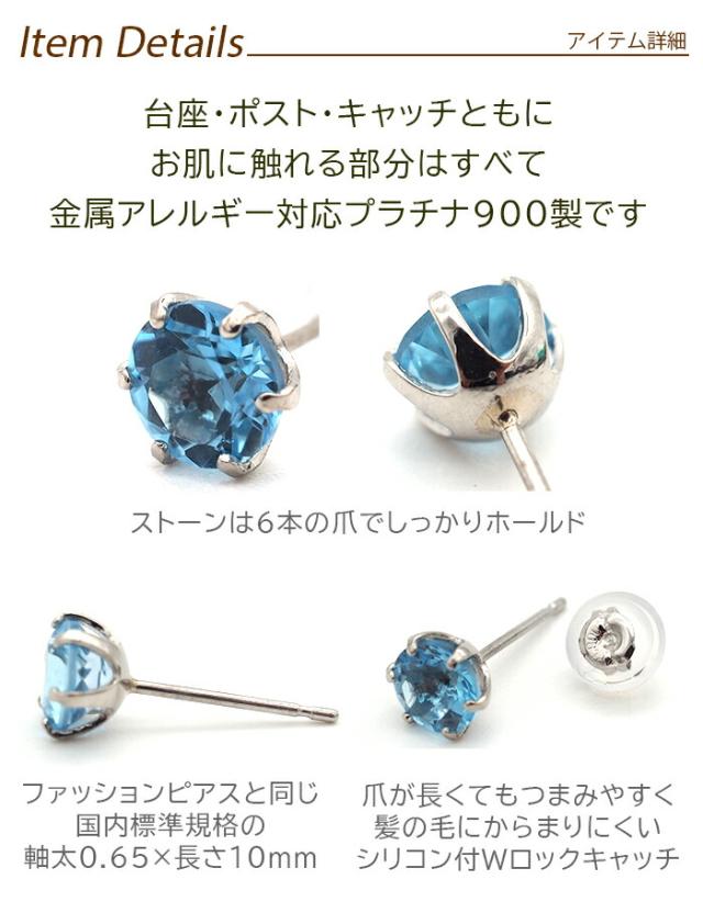 | セカンドピアス つけっぱなし プラチナ PT900 ブルートパーズ 5mm 大粒 ピアス 金属アレルギー対応 |