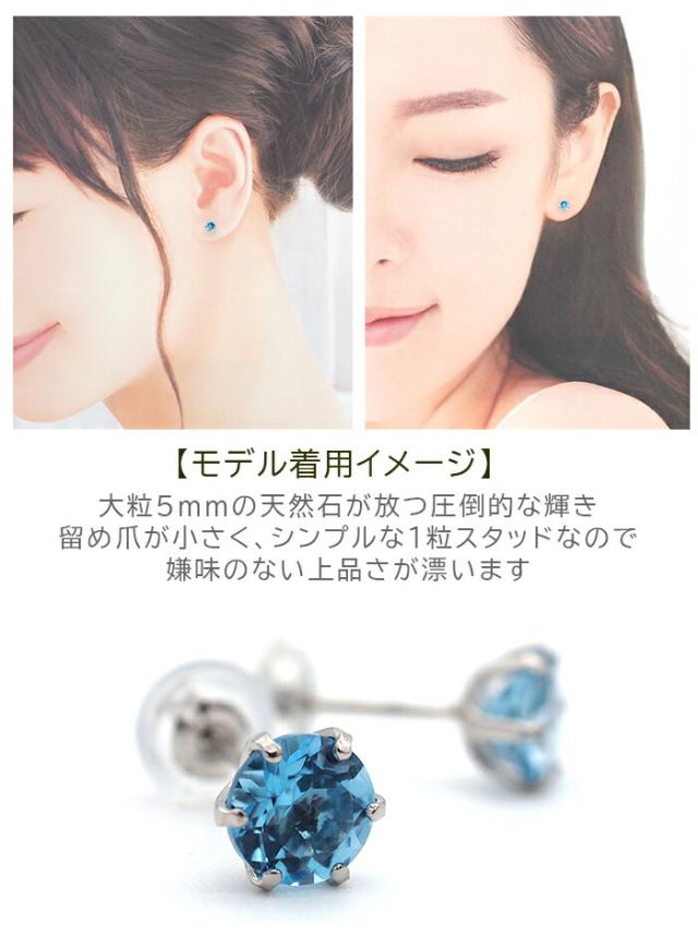 つけっぱなし ピアス プラチナ ブルートパーズ 大粒 5mm 天然石 誕生石 品質保証書つき 金属アレルギー対応 片耳 1個 日本製