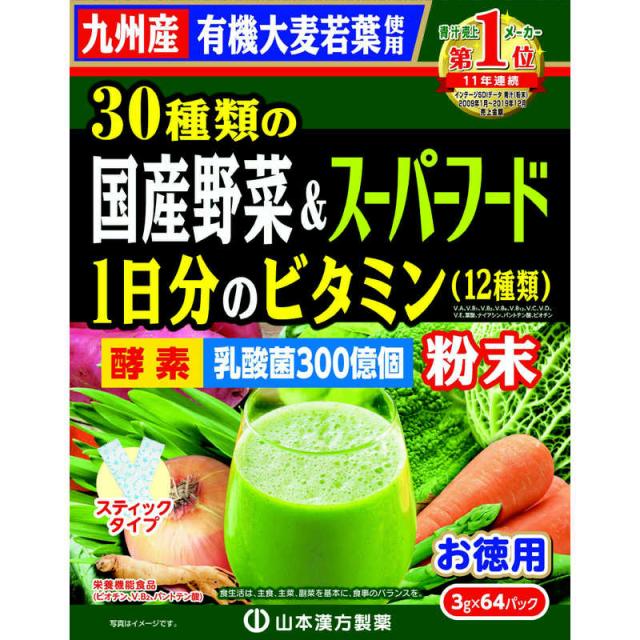山本漢方 30種類の国産野菜+スーパーフード徳用 3g×64パック