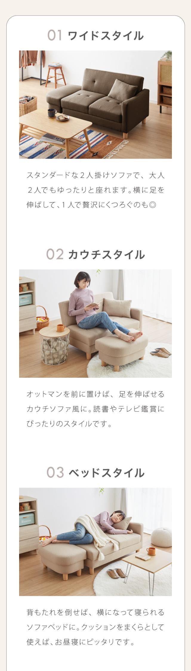ワイドスタイル、カウチスタイル、セパレートスタイル、ベッドスタイルなど用途が多彩です。