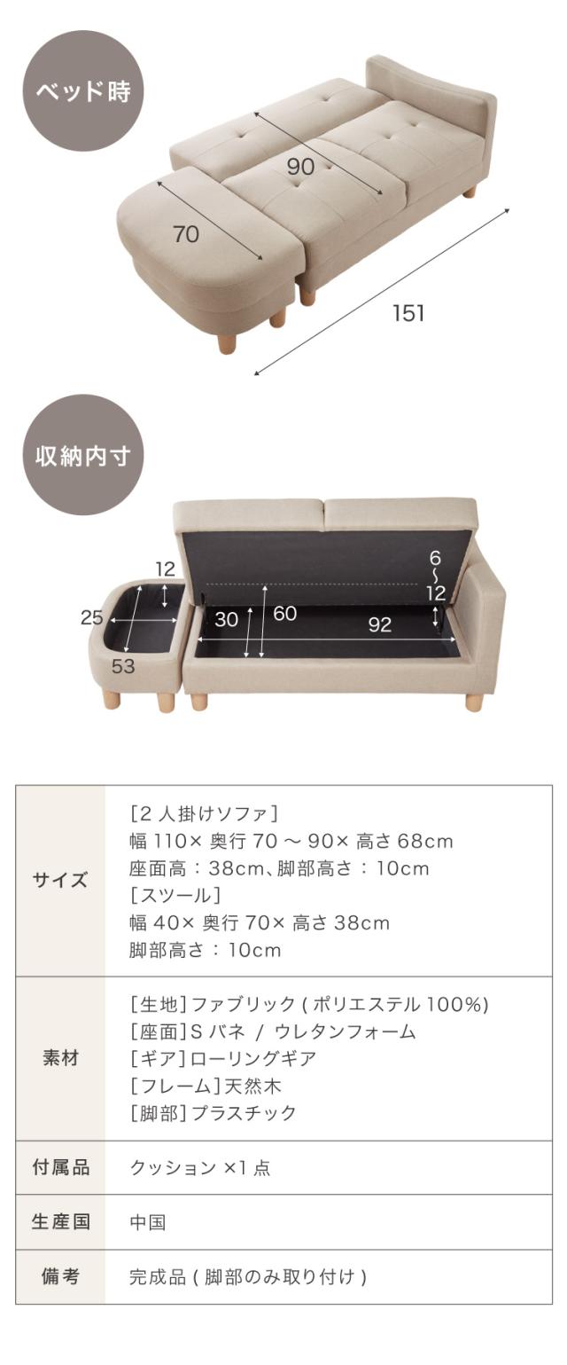 ソファーベッド 収納付き 幅150 2人掛け フロアソファ ソファー ソファ 二人掛け 収納スツール おしゃれ リクライニングソファー sofa ローソファ カウチソファ コーナーソファ 北欧 一人暮らし【送料無料】
