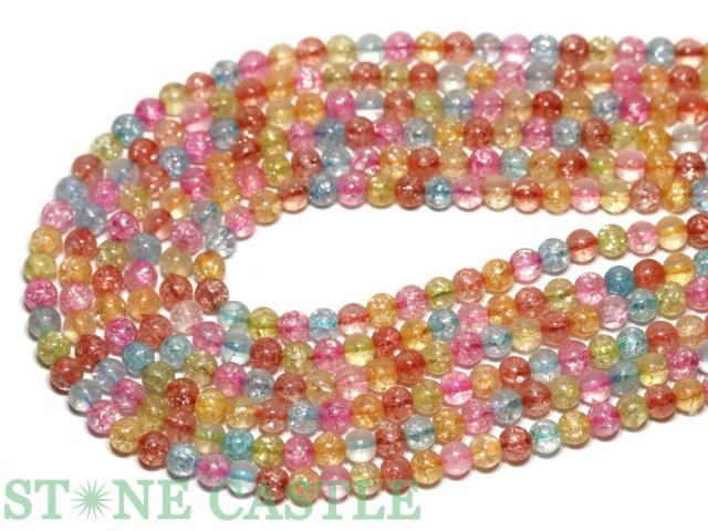 【丸ビーズ】クリスタルガラス マルチクラッシュ 6mm (半連 ブレスレット約1本分)
