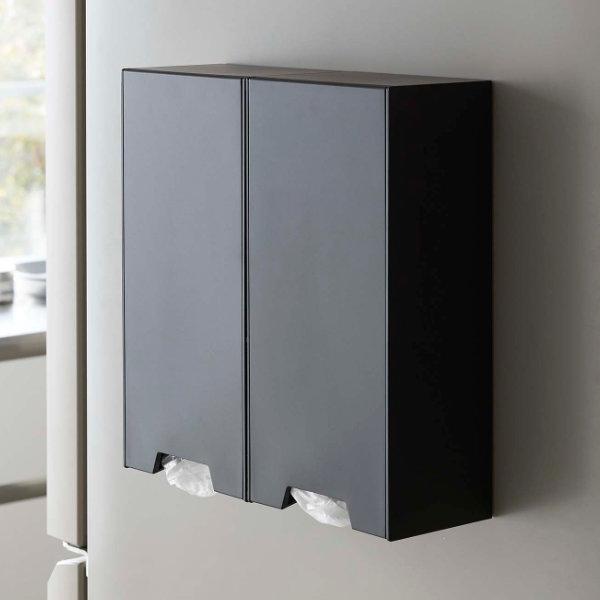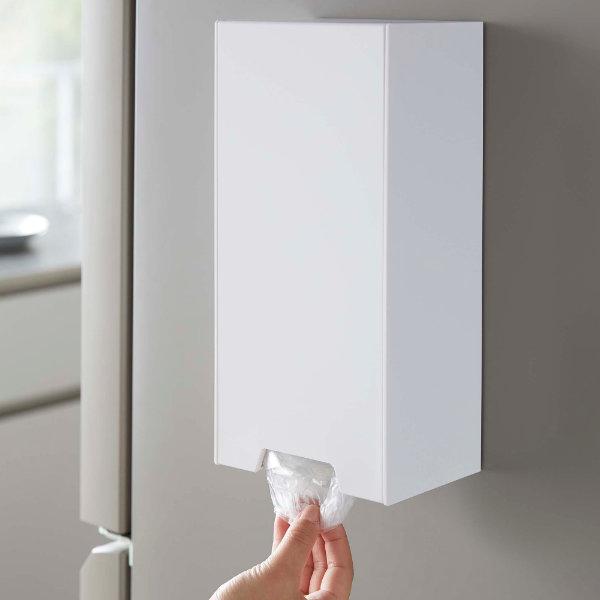 壁面にマグネットでピタッとくっつけてレジ袋収納スペースが作れます。キッチンで何かと使うことの多いレジ袋を、必要な時に取り出しやすく、きれいに収納出来ます。