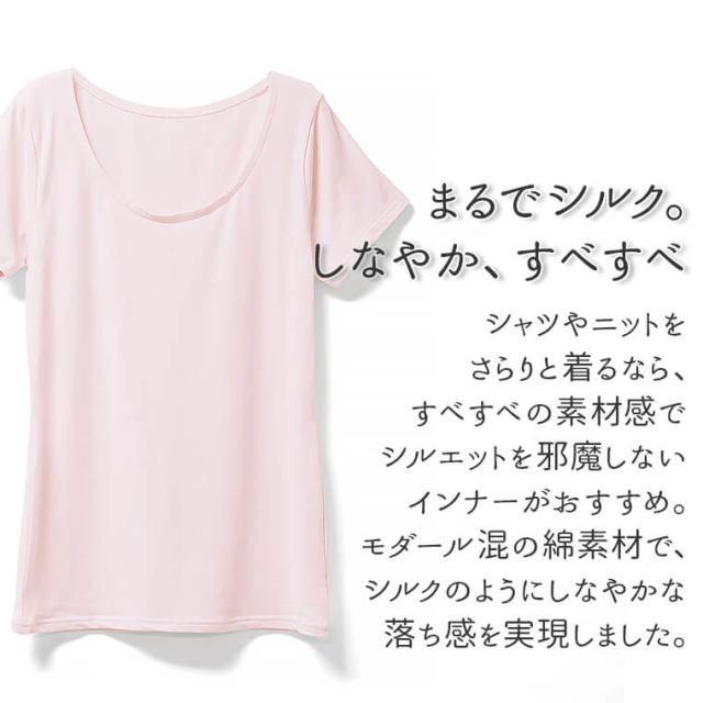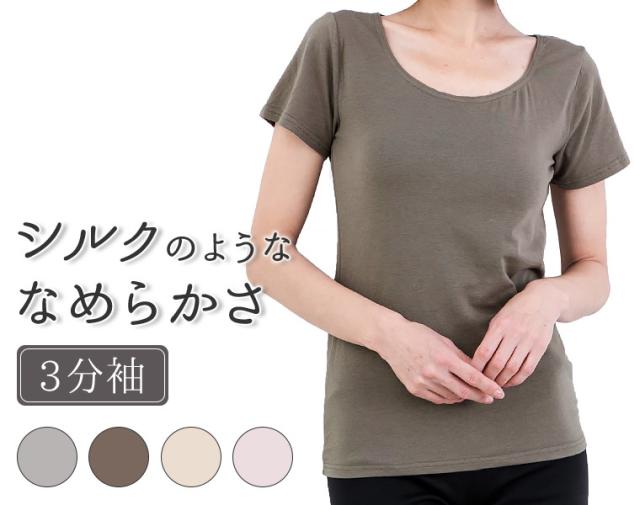 レディース インナー 肌着 半袖 3分袖 秋物 シンプル 婦人 女性 秋冬 モダール レーヨン シルク タッチ なめらか ババシャツ あったか パステル 華やか K5600N-R