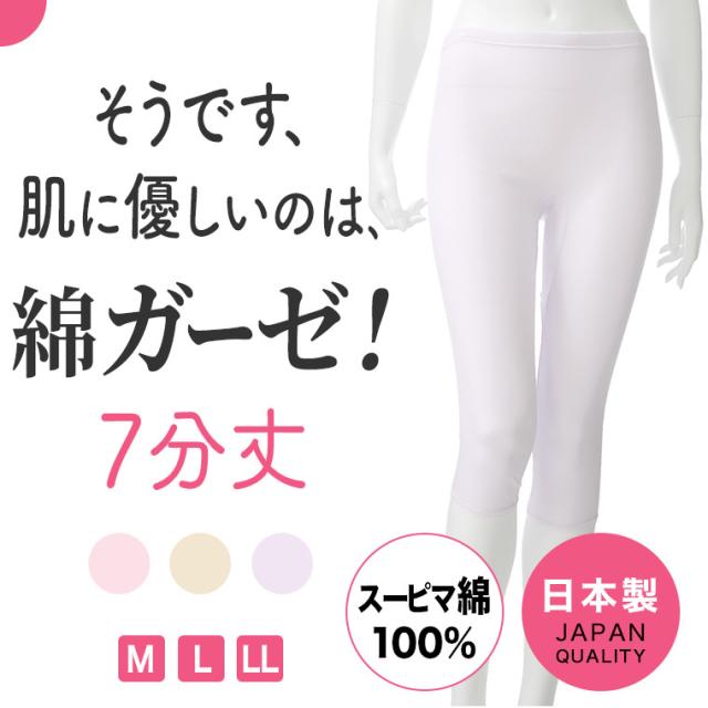 肌に優しい、日本製綿ガーゼ7分丈ボトムス。軽!暖!潤う肌!