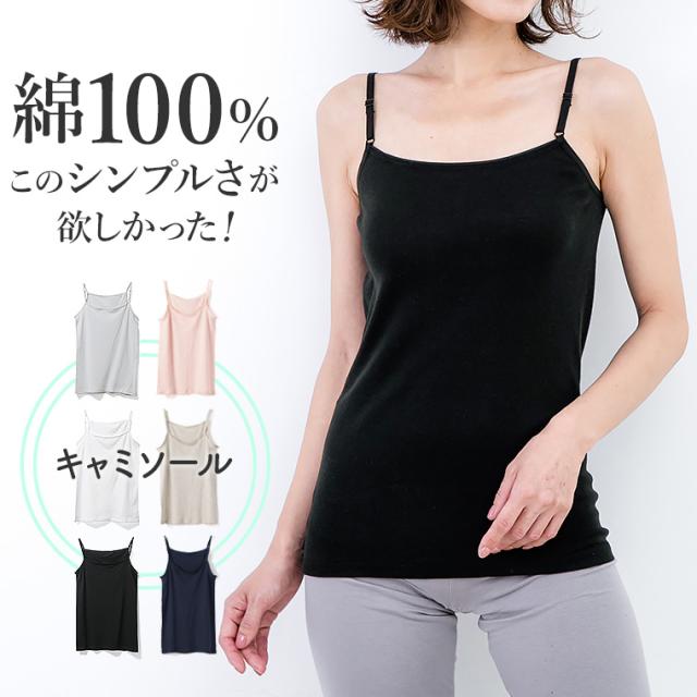 送料無料 綿 100% インナー キャミソール シンプル レディース 年間 コットン 100 抗菌 防臭 ストラップ 調整 アジャスター ベーシック T5030N-R