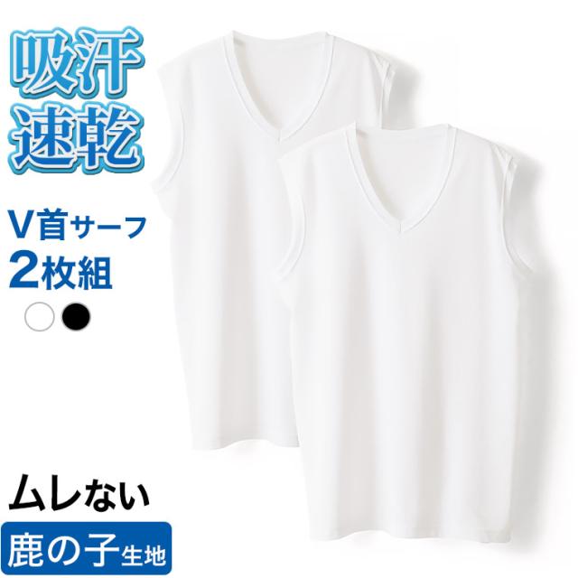 送料無料 ルクール鹿の子 V首サーフシャツ 2枚 セット メンズ 春夏 スリーブレス ノースリーブ 肌着 下着 インナー 消臭 吸汗 速乾 紳士 男性 綿混 Vネック 父の日 ギフト プレゼント L0603E-E