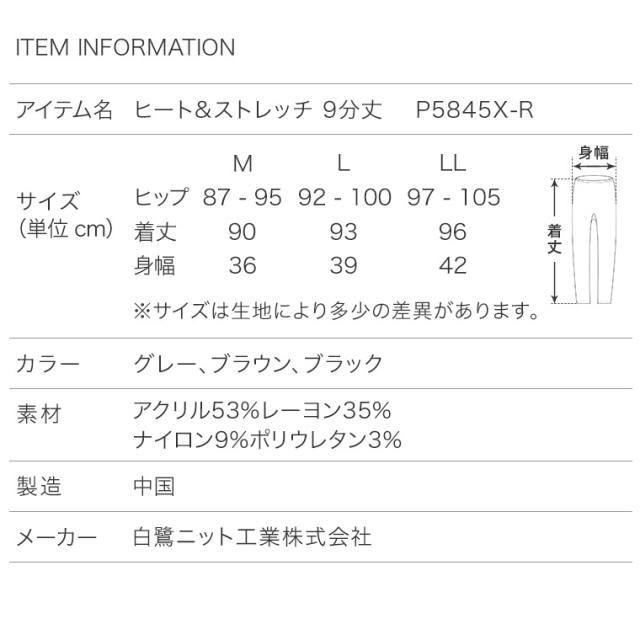 あったか インナー 発熱 9分丈 レギンス レディース 秋冬 吸湿 防寒 暖かい あたたかい 保温 無地 シンプル 薄手 ストレッチ 冬用 ボトムス 女性 婦人 下着 肌着 HEAT&STRETCH ヒートテック P5845X-RT