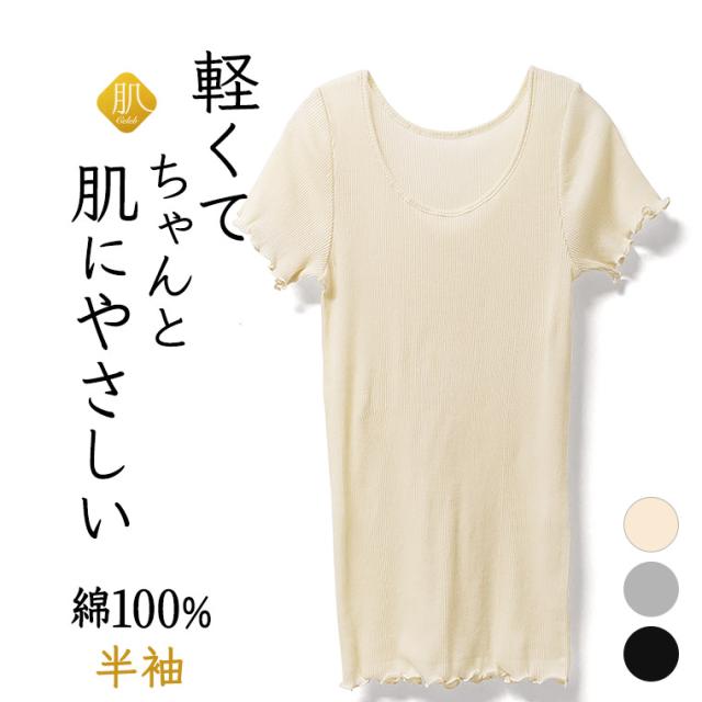 綿100 % 半袖 リブ インナー 肌セレブ レディース 年間 肌に 優しい やさしい 軽い 軽量 春 夏 秋 スーピマ 綿 敏感肌 コットン ストレッチ おしゃれ シャツ 締め付けない スーピマ 綿 日本製 G5091X-RT