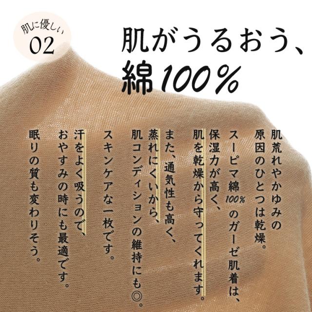 肌に優しい、日本製綿ガーゼ3分丈。軽!暖!潤!