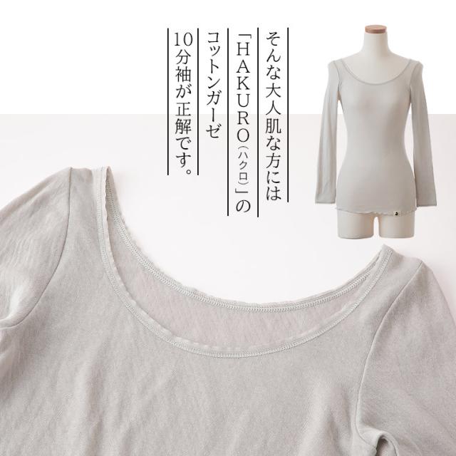 綿100% 10分袖 コットン ガーゼ HAKURO レディース 年間 インナー シャツ 肌に優しい 敏感肌 乾燥肌 バレエネック 通気性 長袖 薄手 30代 40代 50代 60代 春 夏 秋 肌着 下着 日本製 G9213X-HKR