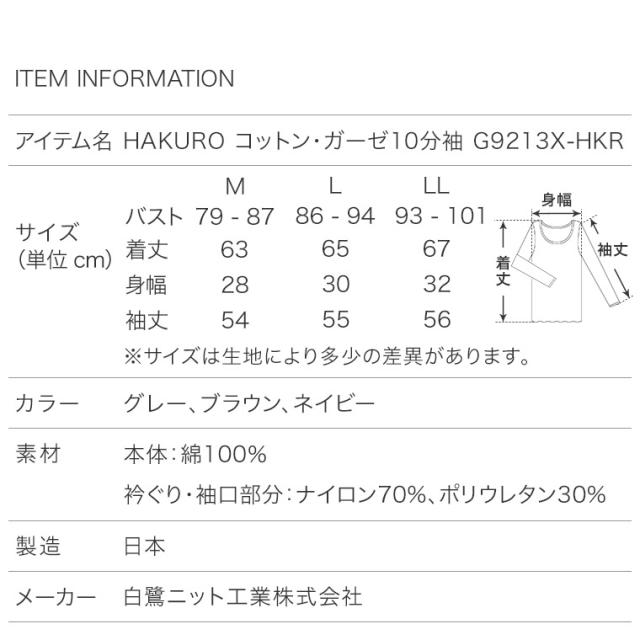 大人の肌に寄り添う「HAKURO」10分袖 コットンガーゼ