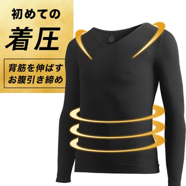 着圧 シャツ 長袖 Vネック 引き締める加圧インナー。