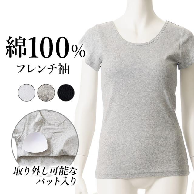 取り外しできるパット入り フレンチ袖 綿100% 抗菌防臭