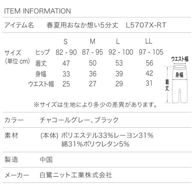 春夏用 5分丈 スパッツ ボトムス レディース 春夏 オーバーパンツ レギンス 締め付けない ゴム無し お腹 対策 暖かい 深ばき 深履き おなか想い L5707X-R