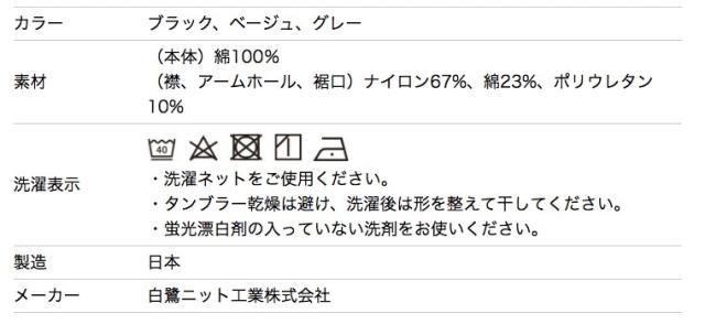 | メーカー | 白鷺ニット工業株式会社 | ||||