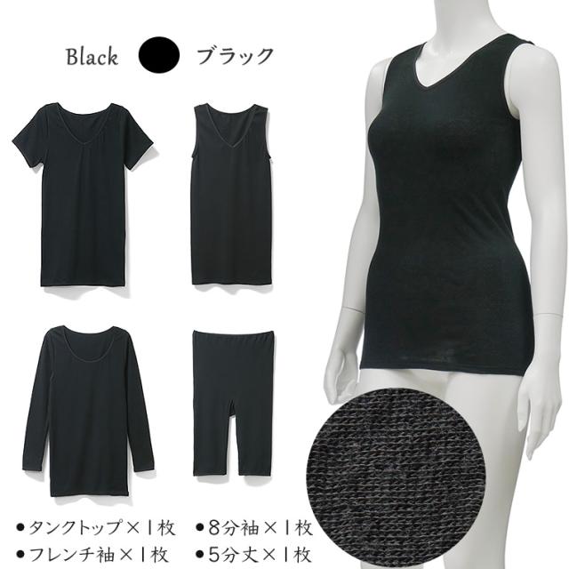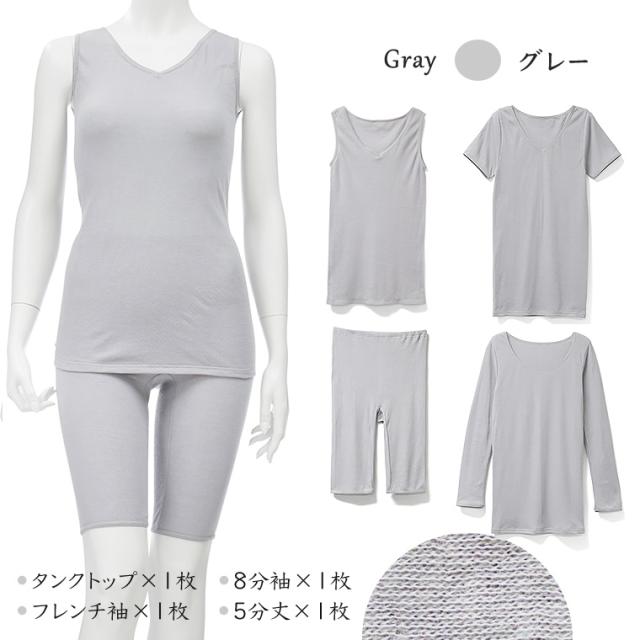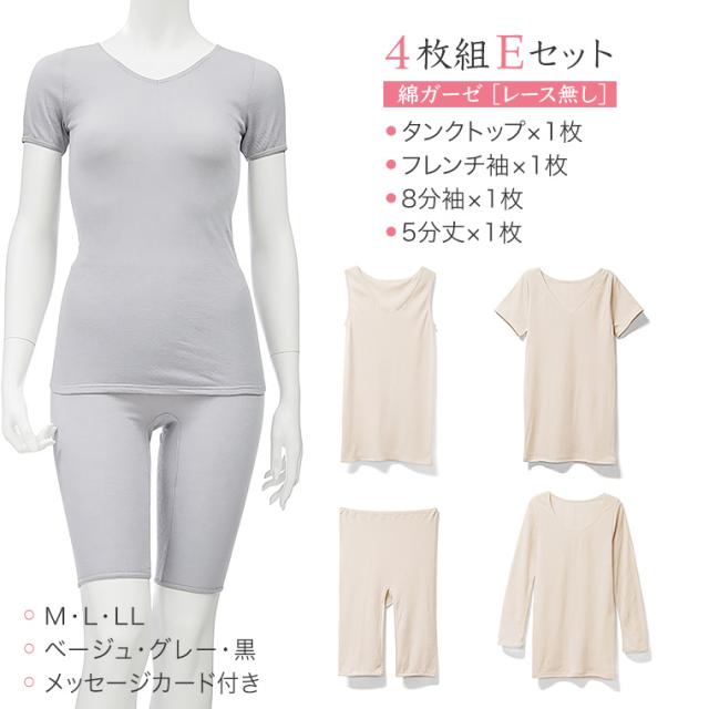 ギフト プレゼント 綿ガーゼインナー 日本製 4枚セットE Y4E-RT タンクトップ フレンチ袖 8分袖 5分丈 レース無し シンプル レディース 年間 肌着 服 花以外 母の日 誕生日 敬老の日 実用的 メッセージ カード 付き 綿100%