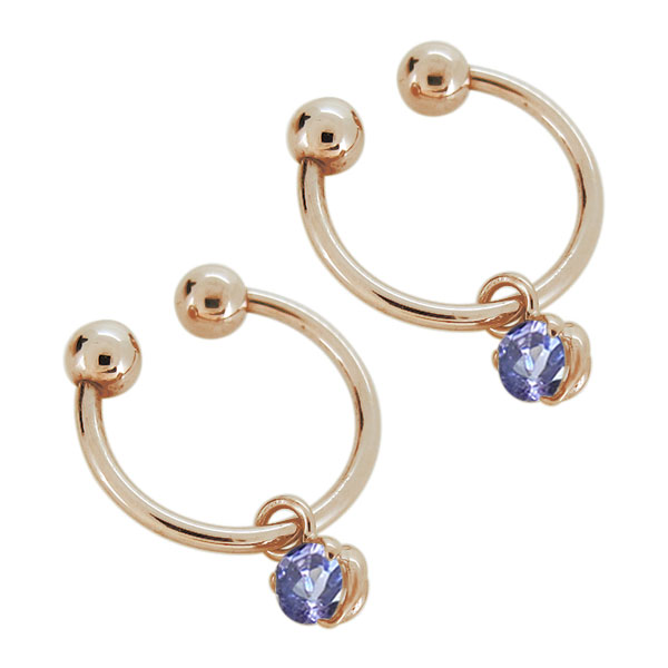 イヤーカフ レディース タンザナイト 揺れる イヤリング かわいい k10金 ノンホールピアス フープ 母の日