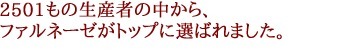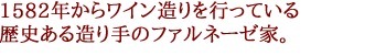 ![]() ![]() ファルネーゼ家は、1582年よりオルトナ市でワイン生産に携わっています。 その昔、当時のファルネーゼの王子と結婚したオーストリアの王女マルゲリータがこの地を訪れたとき、そのすばらしい風景と気候に我を忘れ、この地で生活することを決心し、質の高いワインを造るために、この土地に身をささげました。そしてそのワインはまもなくヨーロッパの王室のテーブルに現れることとなったのです。 ![]() ![]() ファルネーゼの自家所有葡萄園は合計で80haあり、モロリバー ヴァレーの北側の斜面に位置し、それは太陽の恵みを受けるために最高の条件であることを意味しています。そして高度9000フィート、海から18マイルのところにあるマレイア山脈は、高品質のワインを産み出すために理想的なミクロクリマを生み出します。 収穫量を制限し最新のテクノロジィと伝統的な手法をうまく組み合わせ、コストパフォーマンスに優れたワインを産出しています。 ![]() ![]() 彼らのワインは、数々のワインコンクールで高く評価され、国際的にその名を知られています。本拠地のオルトナには、古城をうまく改装した本社が新築されました。その他のワイン醸造設備は、空いている農協の地下倉庫を借りたり、果ては20フィートのリファーコンテナーに樽を入れたり、とアイデアに溢れるものでした。 新樽の使用についても、最初にシャルドネを入れ、その後にカサーレ ヴェッキオに使い、2年も使用したらもうバルサミコの会社に売ってしまうという合理性がありました。 ![]() 辛口評価で知られるルカ マローニ「グイダ デイ ヴィニ イタリアーノ 2005」で、ファルネーゼが2501もの生産者の中からトップに選ばれました。 今後さらに、世界中のワインファンから注目されることは間違いありません。 |