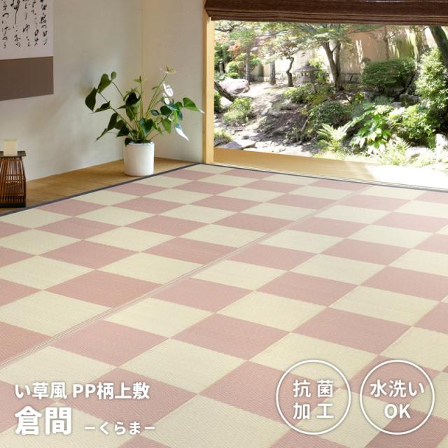 い草風カーペット 抗菌加工 348×440cm 洗える PP柄上敷き 倉間 花ござラグ かわいい 市松柄 保育園 着替えスペース レジャーシート 寝ご