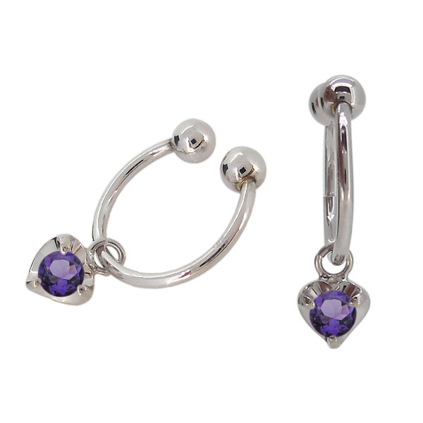 2月誕生石アメジストを使用したプラチナ製の、ハートモチーフフープイヤリングです。