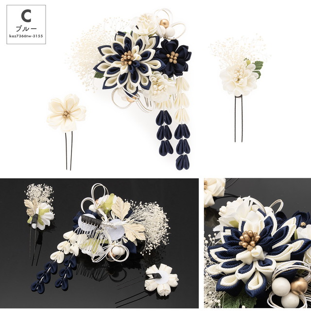 和装のヘアスタイルを彩る、花の髪飾り3点セットです。