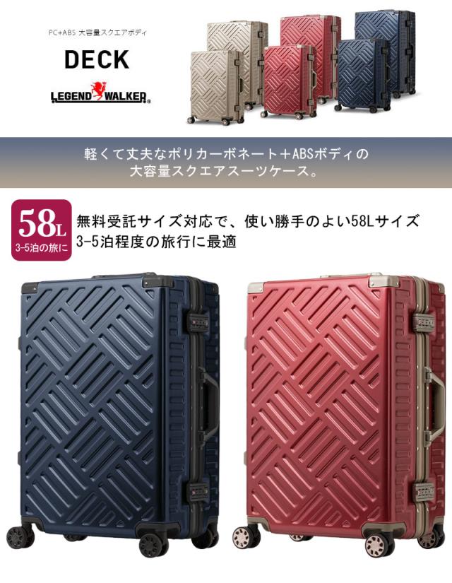 3-5泊の旅に 送料無料 ティーアンドエス(T&S) DECK スーツケース フレームタイプ 58L 5510-57 フレームスーツケース スクエアボディ TSAロック ダブルキャスター コーナーパッド 無料受託サイズ対応