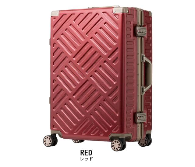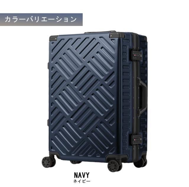 PC(ポリカーボネート)+ABS樹脂で作られたボディは軽さと強さを兼ね備えています。表面はキズが目立ちにくいエンボス加工仕上げ。大容量スクエア設計のためたくさんの荷物をしっかりと収納できます。無料受託サイズ対応で、3-5泊の旅に最適です。