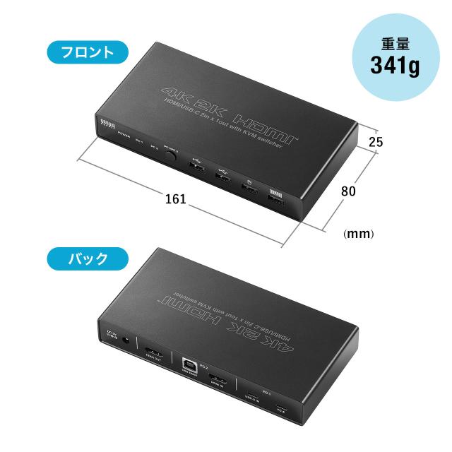 パソコン切替器 USB Type-C HDMI接続2台切り替え HDMI USB Type-C PD給電対応[400-SW037]