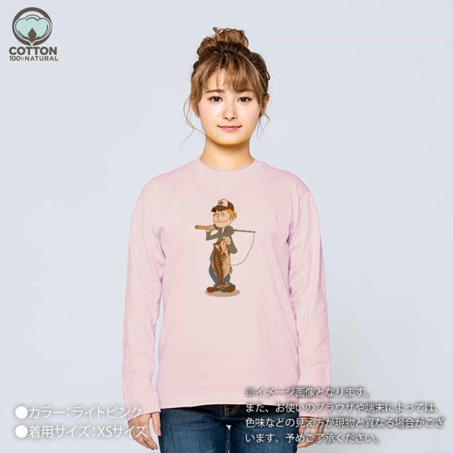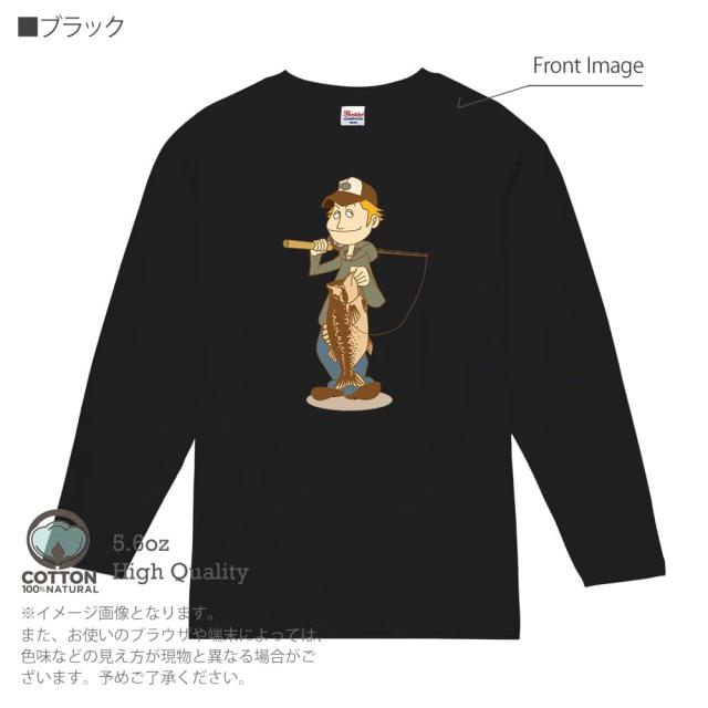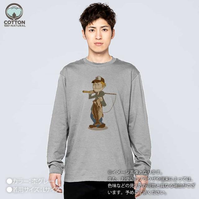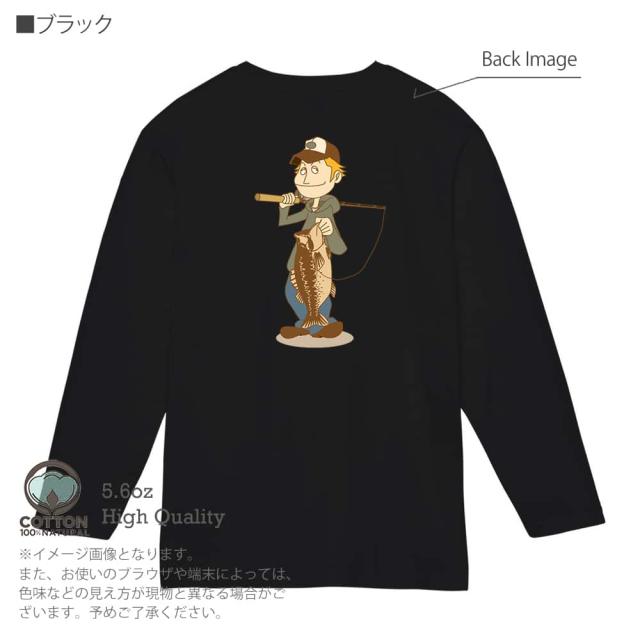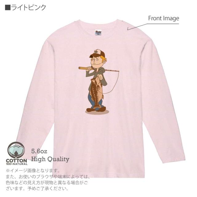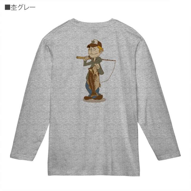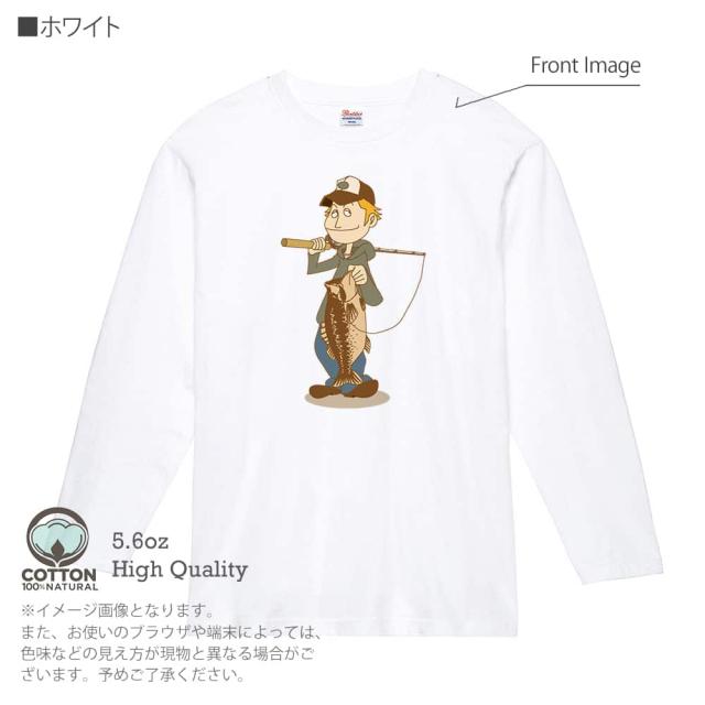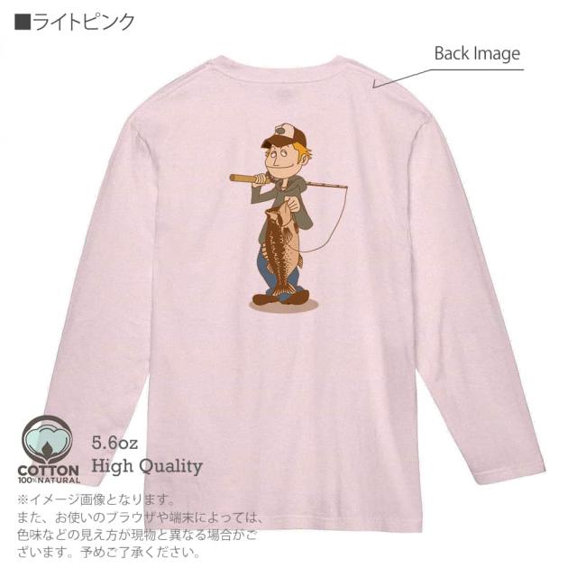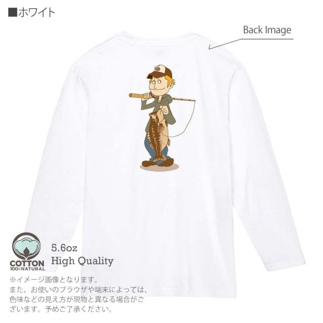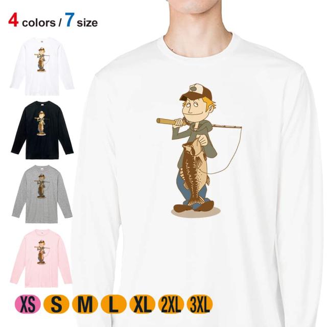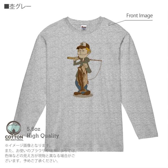 釣り Tシャツ 長袖 釣りボーイ イラスト 5.6oz (オンス) 綿100% メンズ レディース 洗濯 大きいサイズ ホワイト ブラック グレー ピンク 白 黒 灰色 桃色 ロンティー 春 夏 秋 冬 オシャレ 釣り 魚 ルアー