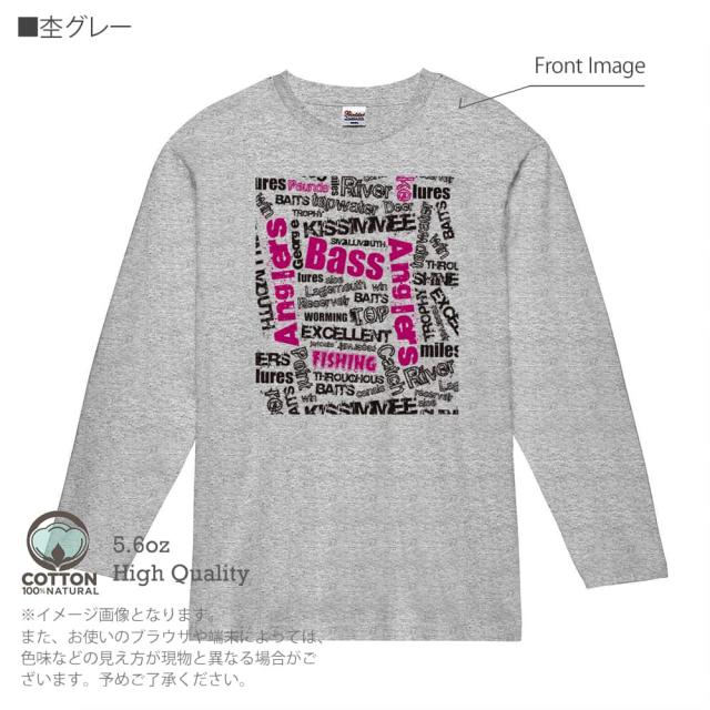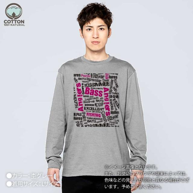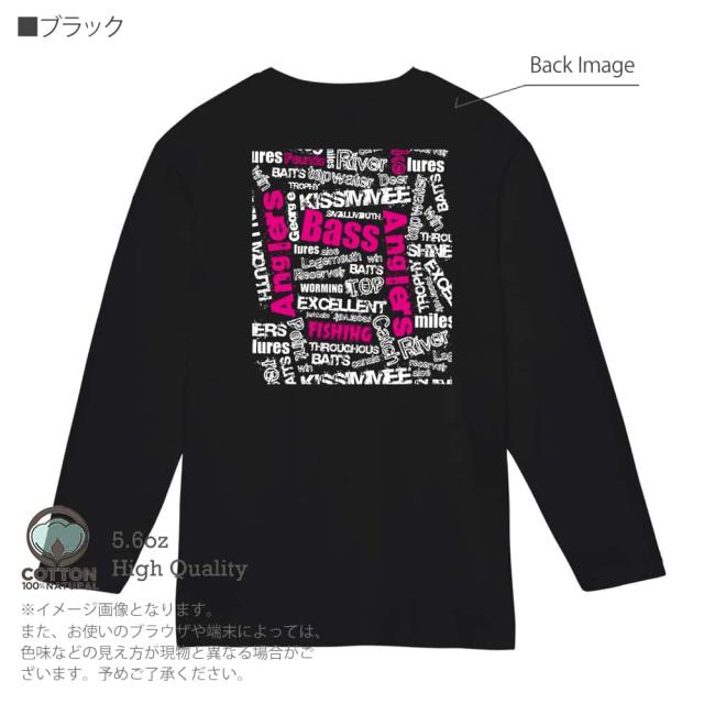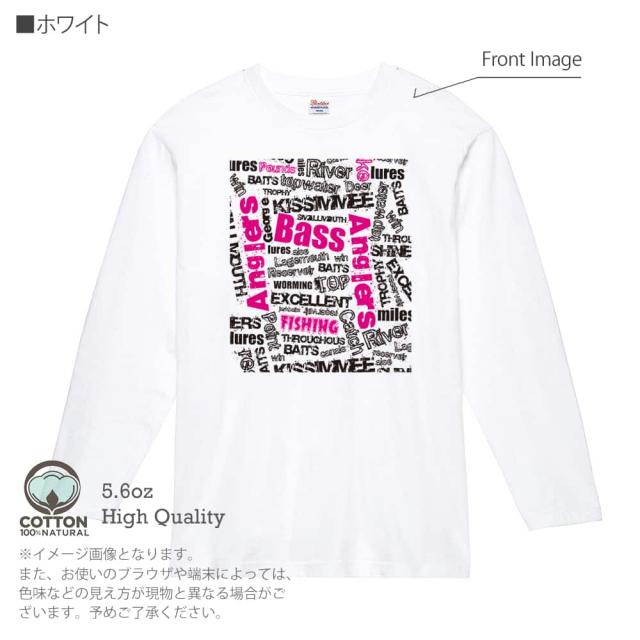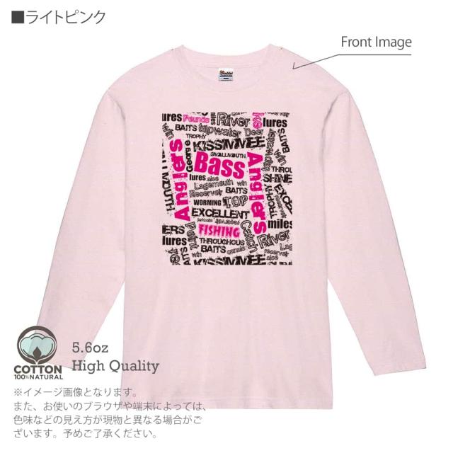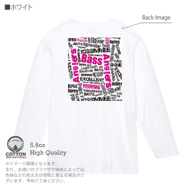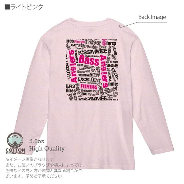 釣り Tシャツ 長袖 BASS テキストデザイン ショッキングピンク 5.6oz (オンス) 綿100% メンズ レディース 洗濯 大きいサイズ ホワイト ブラック グレー ピンク 白 黒 灰色 桃色 ロンティー 春 夏 秋 冬 オシャレ 釣り 魚 ルアー