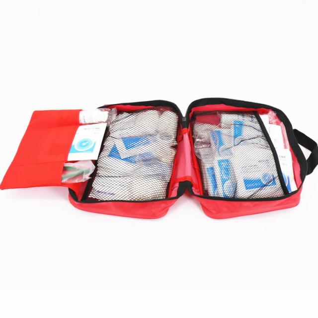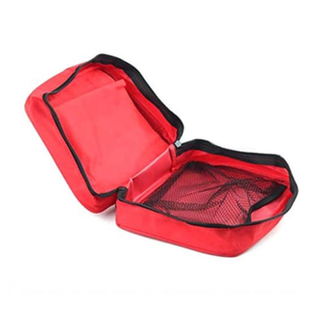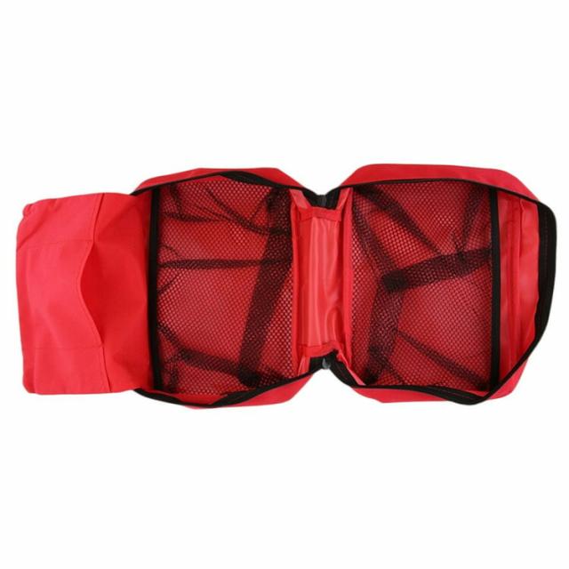 内部にメッシュポケット2つと小さなポケット3つがあり、常備薬、消毒用アルコール、止血帯、包帯、体温件などをスッキリ収納できます。