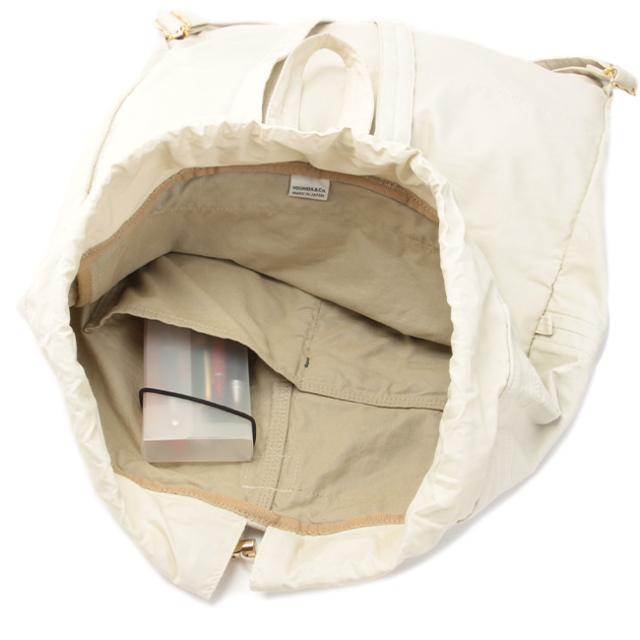 巾着の様な開閉方法。間口が広くとられていて荷物の取り出しが楽にできます。