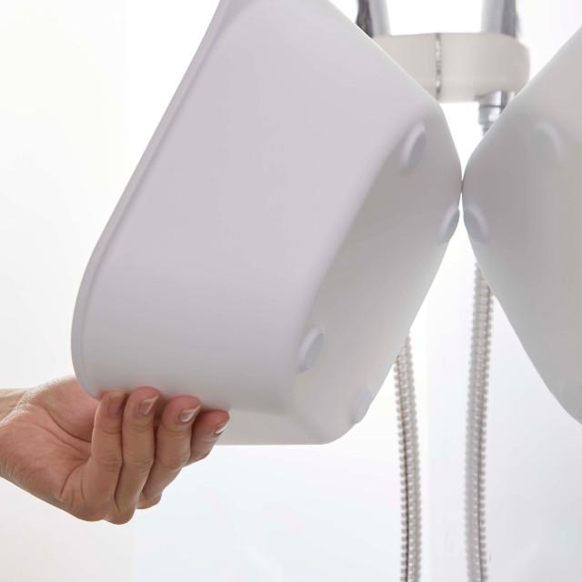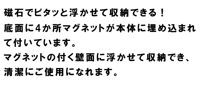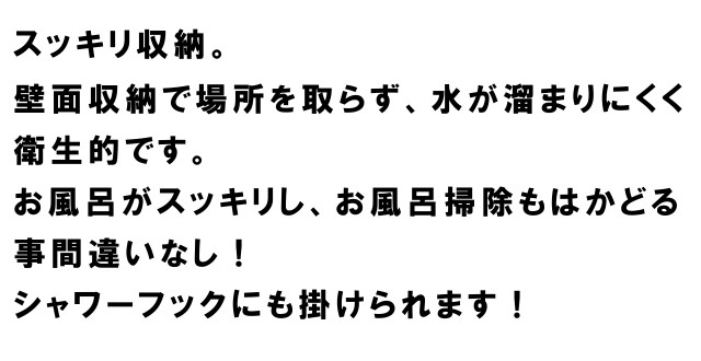 マグネットで浴室壁面に浮かせて収納できるから衛生的。 |