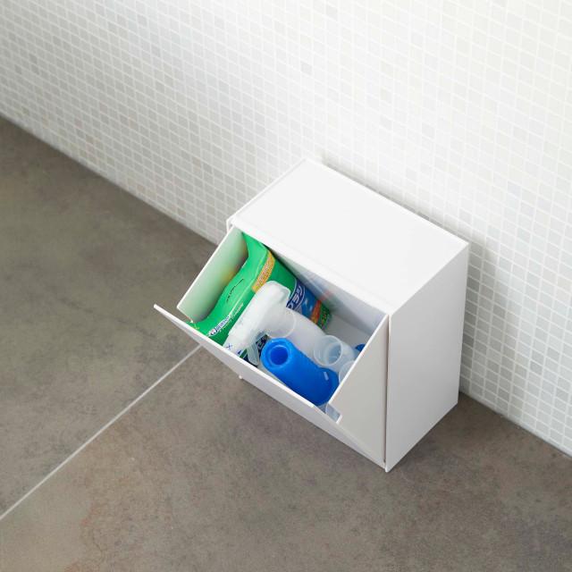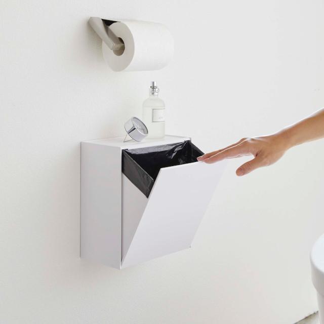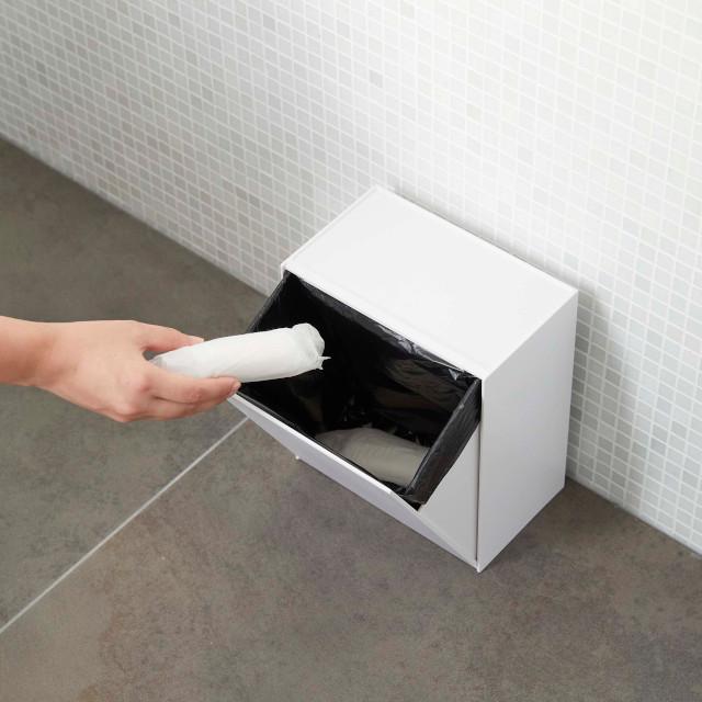 置いても、壁に付けても使える、ゴミを隠して見せない清潔でスマートなトイレポット&収納ケース! フラップ式だから片手で簡単に開閉できます。