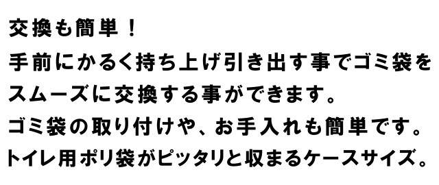 ゴミ袋の取り付けや、お手入れも簡単です。