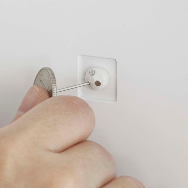 壁の穴が目立たない石こうボードピンで壁に取り付けられます。