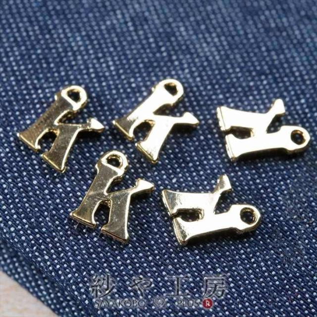 チャーム アルファベットチャーム K 10mm ゴールド 5個 1cm チャームパーツ 大文字 カン付き ブロック体 金属 アクセサリーパーツ パーツ 金属チャーム ハンドメイド パーツ さや工房 手作り
