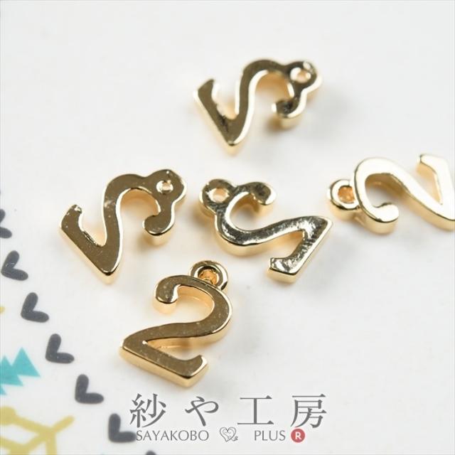 チャーム 数字チャーム 2 10mm ゴールド 5個 1cm チャームパーツ 数字 カン付き ナンバー 金属 アクセサリーパーツ パーツ 金属チャーム ハンドメイド パーツ さや工房