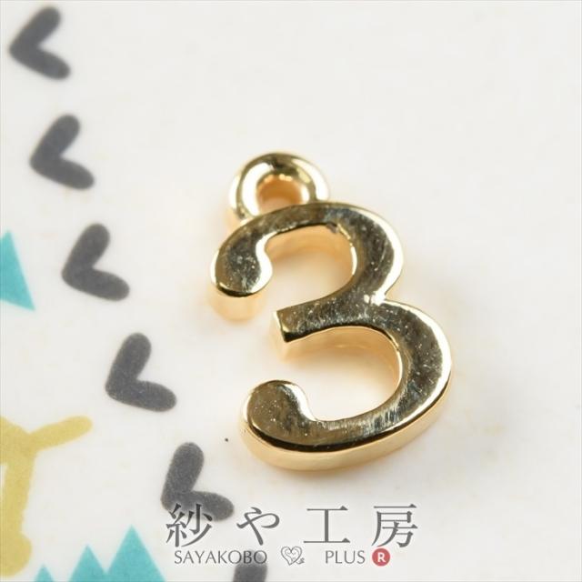 チャーム 数字チャーム 3 10mm ゴールド 1個 1cm チャームパーツ 数字 カン付き ナンバー 金属 アクセサリーパーツ パーツ 金属チャーム ハンドメイド パーツ さや工房