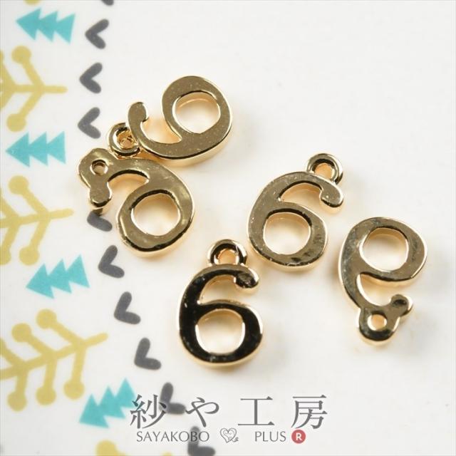 チャーム 数字チャーム 6 10mm ゴールド 5個 1cm チャームパーツ 数字 カン付き ナンバー 金属 アクセサリーパーツ パーツ 金属チャーム ハンドメイド パーツ さや工房