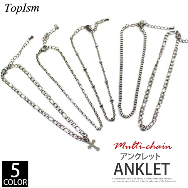 送料無料 マルチチェーン アンクレット ブレスレット メンズ レディース 男女兼用 ユニセックス ペア プレゼント アクセサリー シンプル 小物 ポイント消化 ゆうパケ