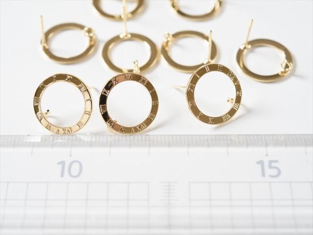 紗や工房オリジナル ピアス 国内本金メッキ リング 15mm ゴールド 5ペア 金属アレルギー対応 カン付 デザインリング 大 ローマ数字