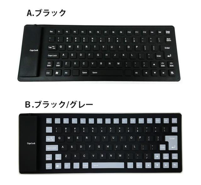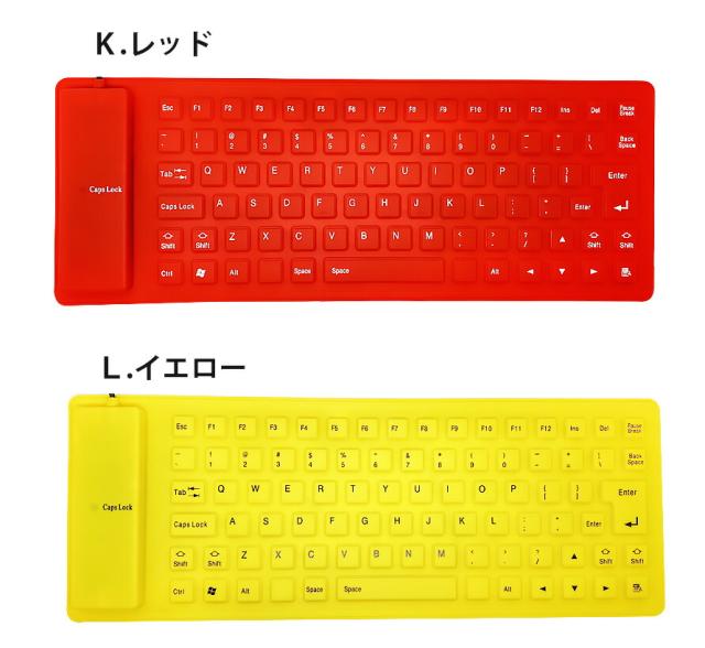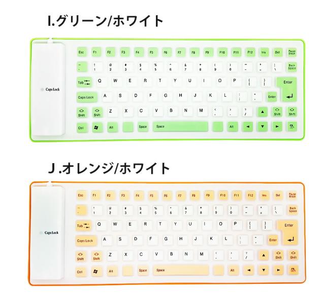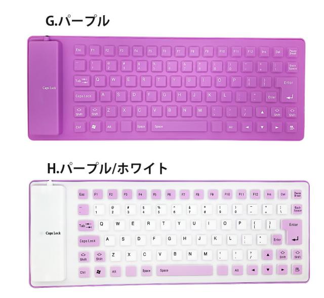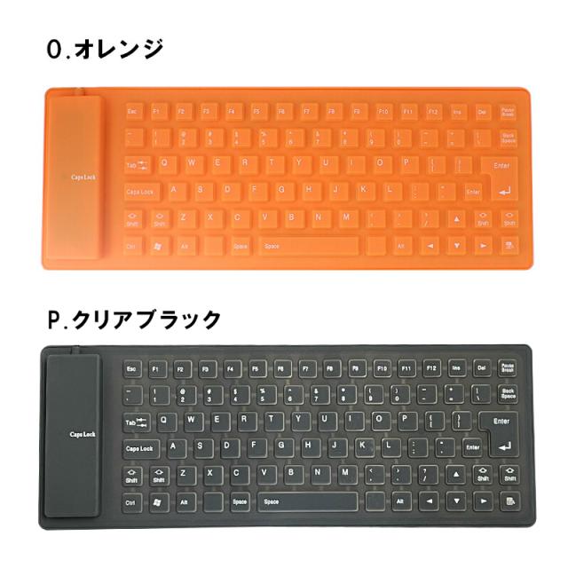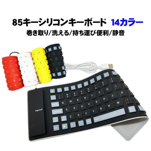 85キー シリコンキーボード USB 有線 折りたたみ 巻き取り 柔らかい 英語配列 薄型 軽量 携帯 コンパクト ブラック グレー イエロー パープル レッド オレンジ グリーン ブルー ピンク 【送料無料】