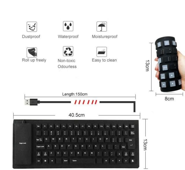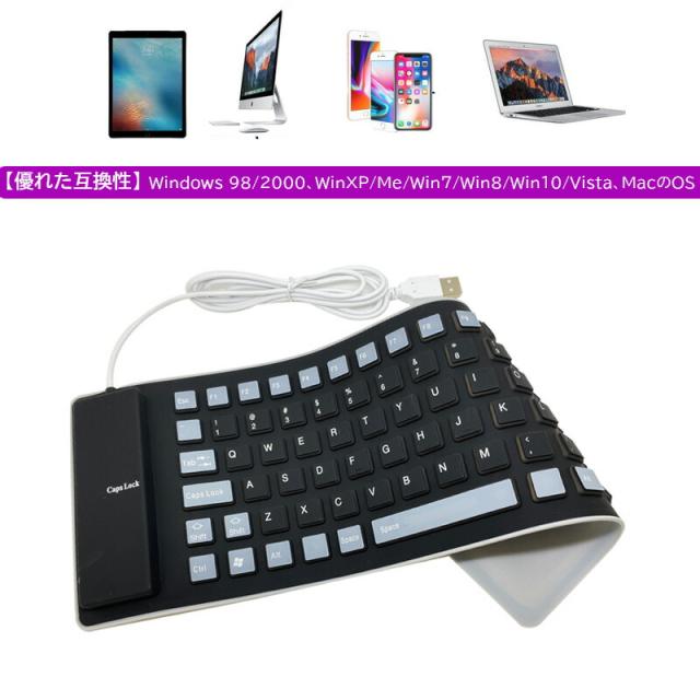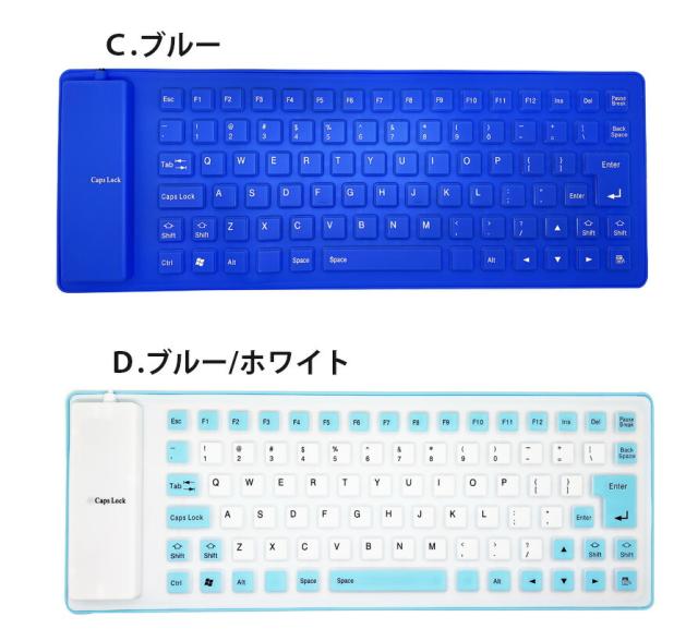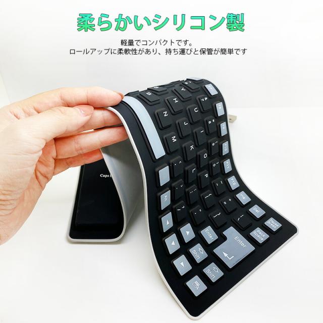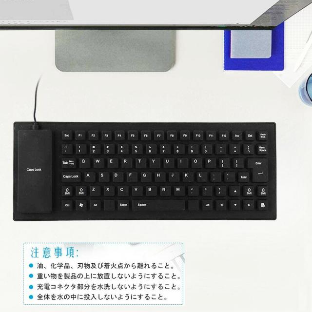 | 85キー シリコンキーボード USB 有線 折りたたみ 巻き取り 柔らかい 英語配列 薄型 軽量 携帯 コンパクト |