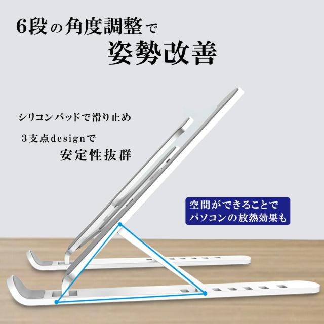 | ノートパソコンスタンド 折りたたみ 6段角度調整 Windows iOS MackBook PCスタンド 滑り止め 腰痛 姿勢改善 ノートPC ゲーム 収納 コンパクト パソコンデスク |