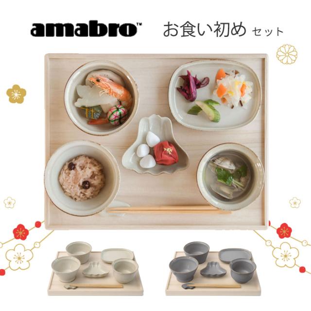amabro アマブロ お食い初め 食器 桐箱 百日祝い 100日祝い 半磁器 波佐見焼 国産天然木 アテ ギフトセット ギフト 出産祝い