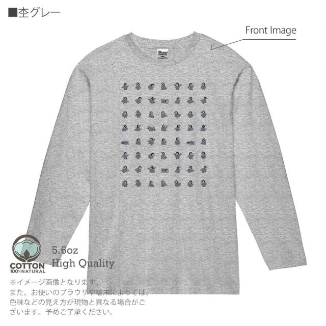 | 素 材 | ・長袖Tシャツ5.6oz ・綿(コットン)100%(※杢グレーは綿80%、ポリエステル20%) ・商品の出荷時は、プリント時に使用した糊が付着しております(印刷面の周りなど)。一度洗濯してからご着用下さいませ(何度か洗っているうちに糊は取れます)。 |