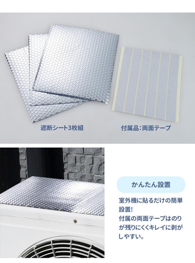 【メール便】エアコン室外機用遮熱シート3枚組(SV-7008) 省エネ 対策 室外機カバー 日よけ 保護 節電 効率アップ 電気代カット アルミパネル 遮熱パネル 遮熱シート 断熱 日本製 国産 セーブインダストリー